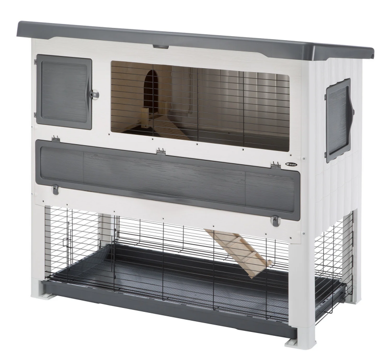 Het verblijf bestaat uit een stevig Ferplast Grand Lodge zoals hiernaast afgebeeld, met ruimte om te bewegen, daarnaast zullen ze overdag in een ren op het gras loslopen. Het vakantieverblijf zelf bestaat uit 2 ruime verdiepingen met nog een kleinere ruimte erboven als nachtverblijf. Door middel van een trappetje komen ze op de verdieping boven en boven kunnen ze doormiddel van een klein trappetje naar het nachthok, naast het vakantieverblijf krijgen ze overdag de mogelijkheid om los te lopen in een afgezette en overdekte ren. Het vakantieverblijf is hiernaast op de foto afgebeeld. Deze verblijven staan onder de bomen, deze zorgen voor schaduw en verkoeling in de hete zomermaanden. Het verblijf is ten grootte van 1.60m lengte bij 80cm breed en een hoogte van 1.17m (wegens dubbele verdieping). Het verblijf wordt minstens 2x per week volledig gereinigd. Met heet weer wordt dagelijks de ontlasting eruit gehaald. Indien nodig dan wordt dit vaker gedaan.